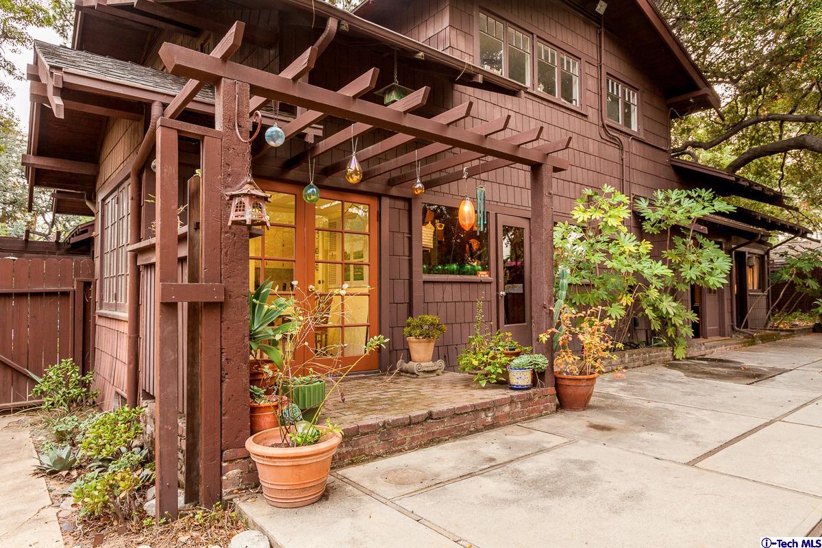 Built in 1912, the Howell House is a historic craftsman located in a prime area of Altadena.The beautiful arts & crafts design is immediately evident in its welcoming front porch made of decorative clinker brick. Once inside, the living room showcases spectacular millwork in the window surrounds & moldings, built-in bookcases,a box beamed ceiling & a gorgeous inglenook surrounding the fireplace.The dining room features a built-in china cabinet with leaded glass doors as well as a built-in buffet & a plate rail.The library features a fireplace & built in leaded glass bookcases on every wall. An adjacent sun-room & bath open to the large yard.The kitchen & breakfast room are light & bright.The 2nd floor has 3 bedrooms & a 4th room, currently an office.There are 2 baths on this level.The grounds are a combination of patios for entertaining & natural gardens that lend a rustic ethereal quality.Under an arbor & at end of a stone path rests the artist’s studio attached to a 2 car garage.